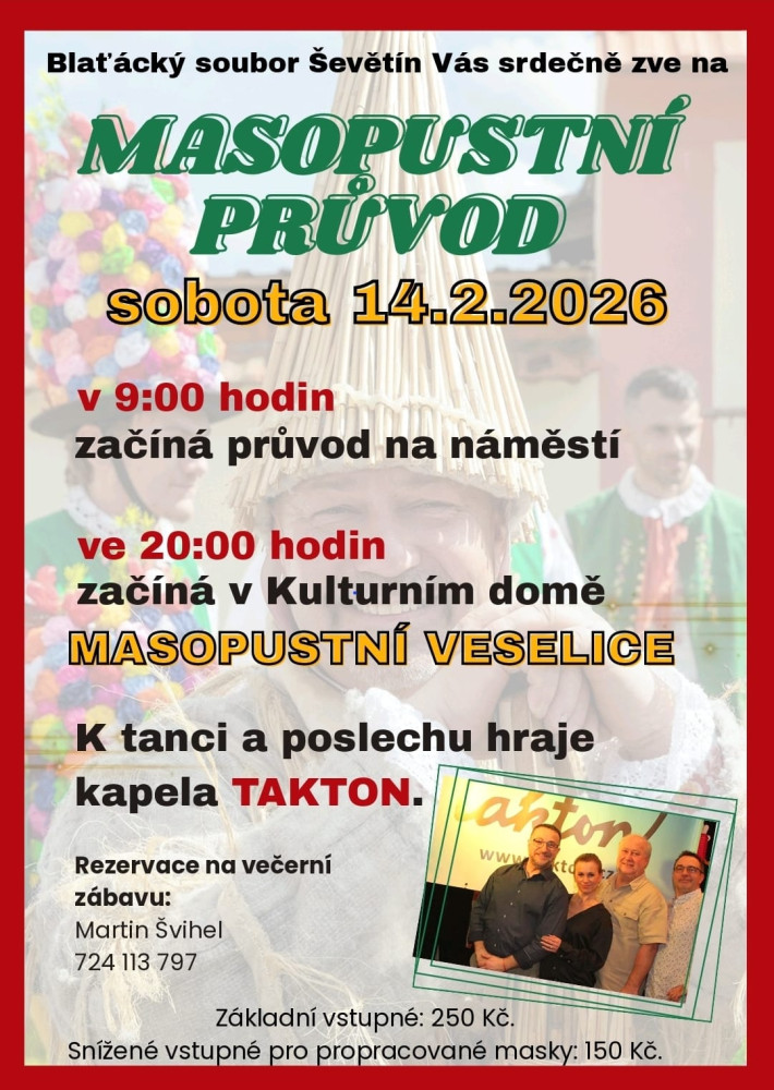 20.02. Maškarní veselí - hraje Kocourovo Kartáč (KD Ševětín)